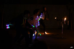 Et bien sûr, l'ECG, c'est plein de projets autour du cirque ! Une tournée à vélo, des sorties en festival, des stages de création, une compagnie de pyrotechnie, du cirque avec les écoles officielles, de l'handicirque, des créations collectives... De nombreux groupes sont également nés de notre école : Les Nez Patentes, Les Poules Ailées, les Zailées...
